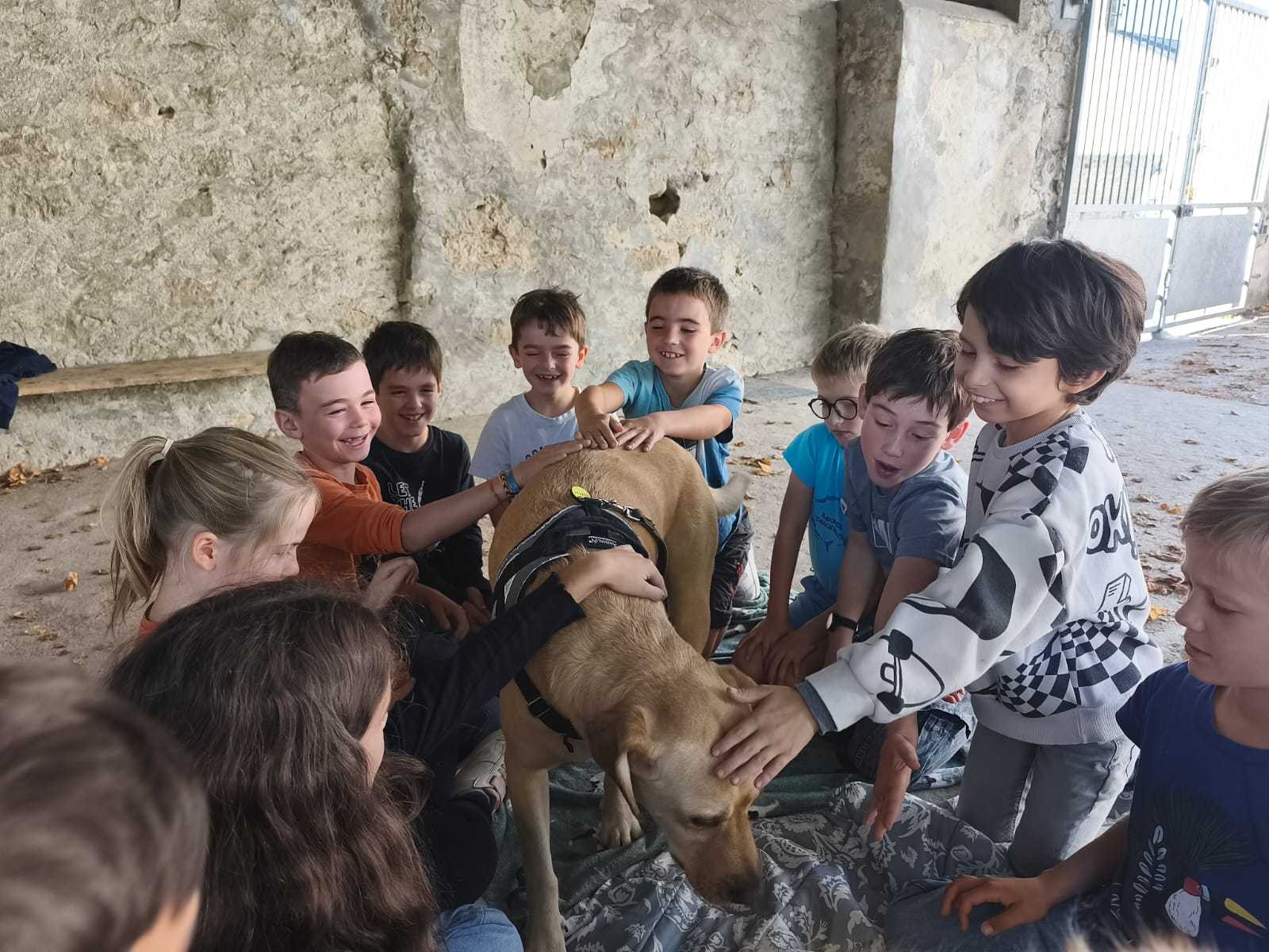 La semaine dernière, les élèves de CP, CE1 et CE2 ont eu la chance d’accueillir Fanny Métayer, comportementaliste canine, ainsi que ses deux très sympathiques compères Pitch et Lucky dans les classes.