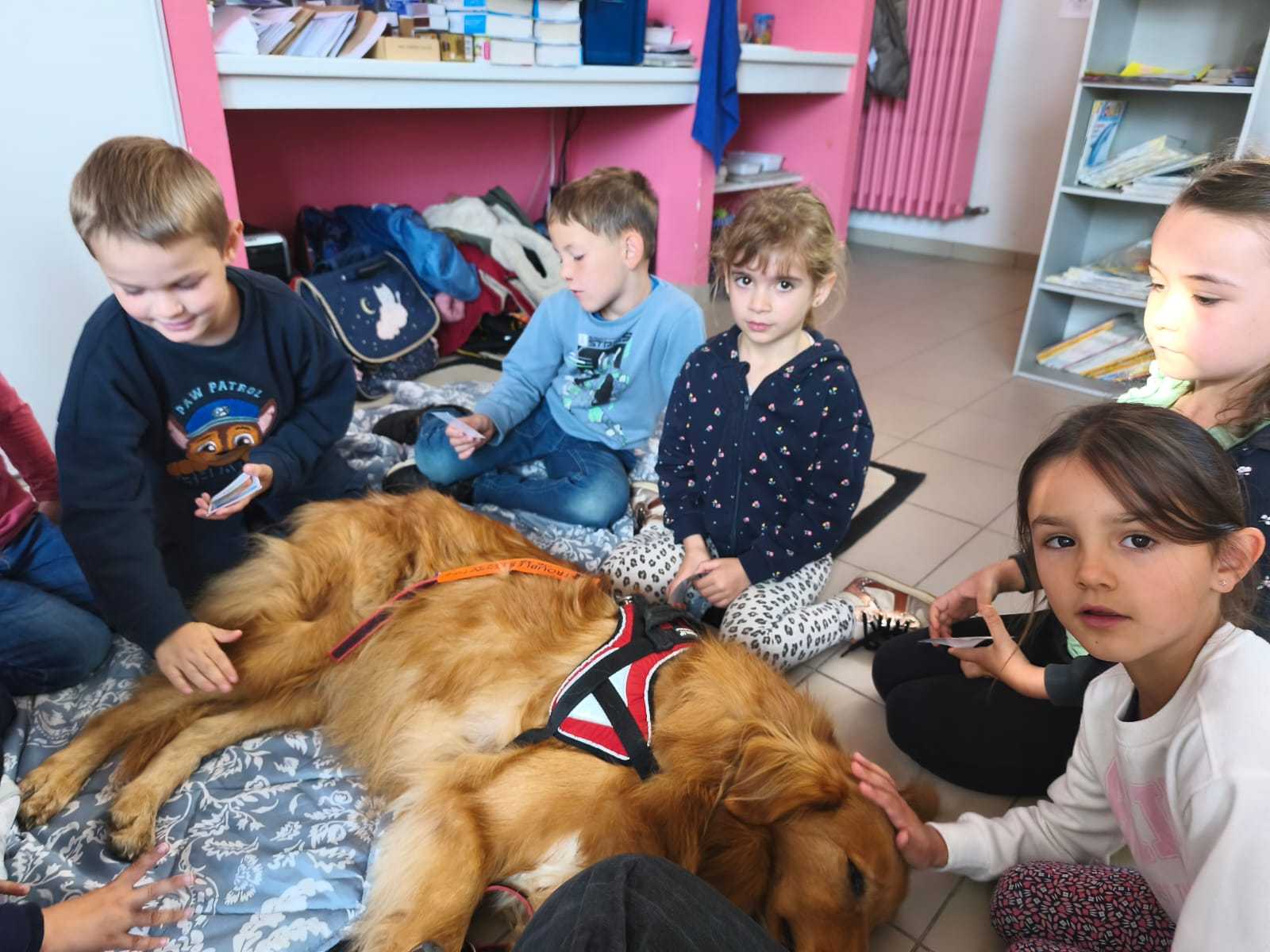 La semaine dernière, les élèves de CP, CE1 et CE2 ont eu la chance d’accueillir Fanny Métayer, comportementaliste canine, ainsi que ses deux très sympathiques compères Pitch et Lucky dans les classes.