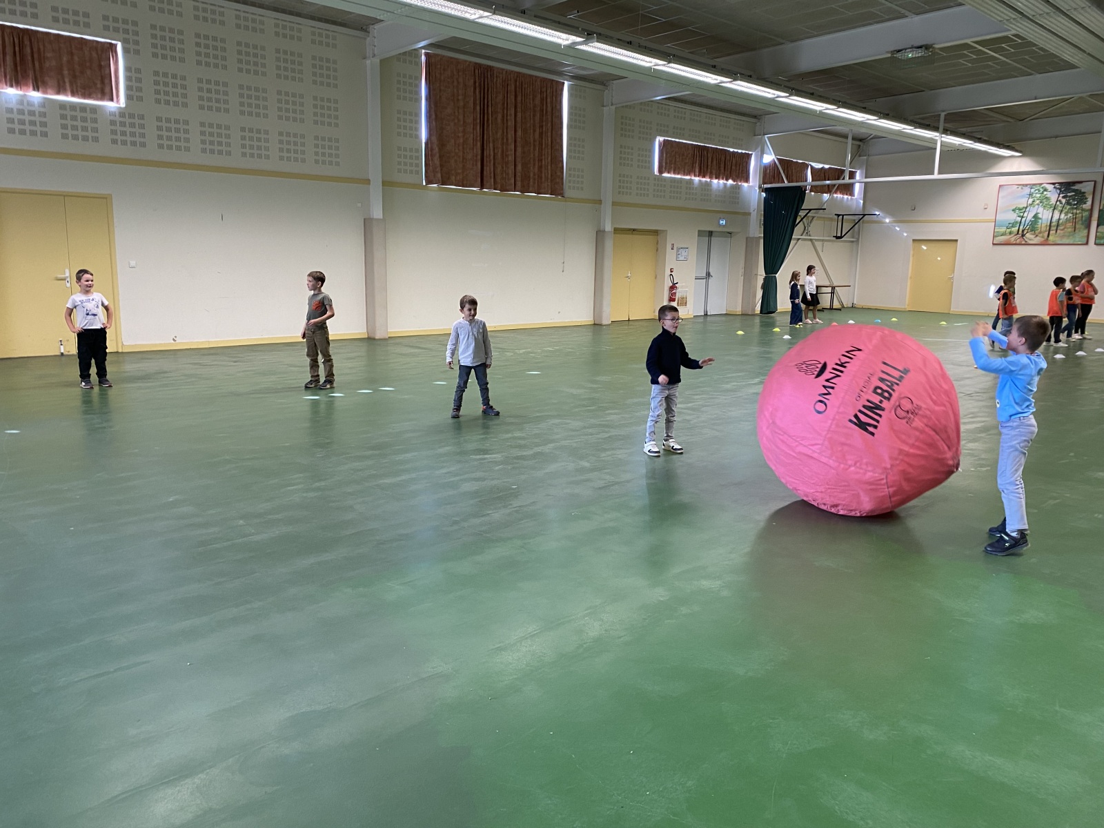 Pour cette première période, les élèves de cycle 2 ont tous découvert les règles d’un nouveau jeu collectif : le jeu des amulettes… Ensuite les CP et CE2 ont découvert le KINBALL (une grosse balle de plus d’un mètre de diamètre à déplacer en équipe) et quelques jeux collectifs. Les CE1 étaient à la natation chaque vendredi après-midi.