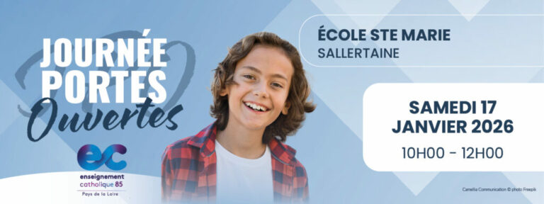 Ouvrez les portes de l’école Sainte Marie de Sallertaine et venez découvrir une école accueillante, une équipe dynamique, une ambiance familiale, des locaux neufs, des projets variés, un équipement de qualité, …